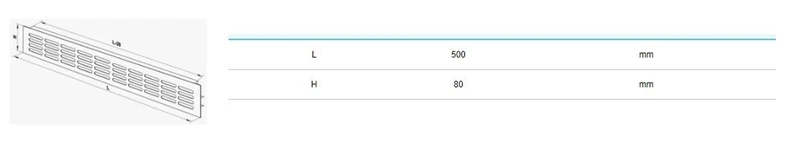 Preču zīmols - Haushalt. Materiāls - Alumīnijs. Krāsa - Pelēka. Augstums - 80 mm. Platums - 500 mm. Regulējamas - Nē. Papildu informācija - Gaisa caurlaidība - 0.0120 m². Izgatavotas no anodēta alumīnija.