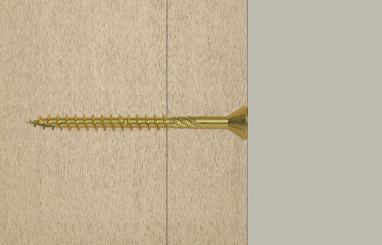 Special wood screw for MDF, with small 75° countersunk head and TORX tip. With complementary threads, milling cutters and a notch for quality work.