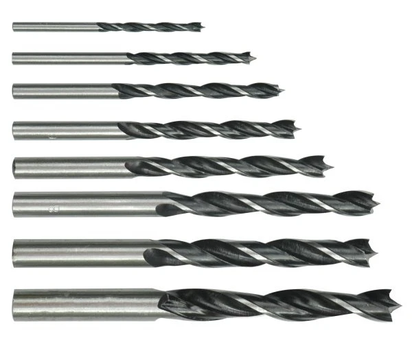 Urbju komplekts kokam. Komplektā urbji ar diametru 3 mm, 4 mm, 5 mm, 6 mm, 7 mm, 8 mm, 9 mm un 10 mm. Kopējais garums no 60 līdz 115 mm.