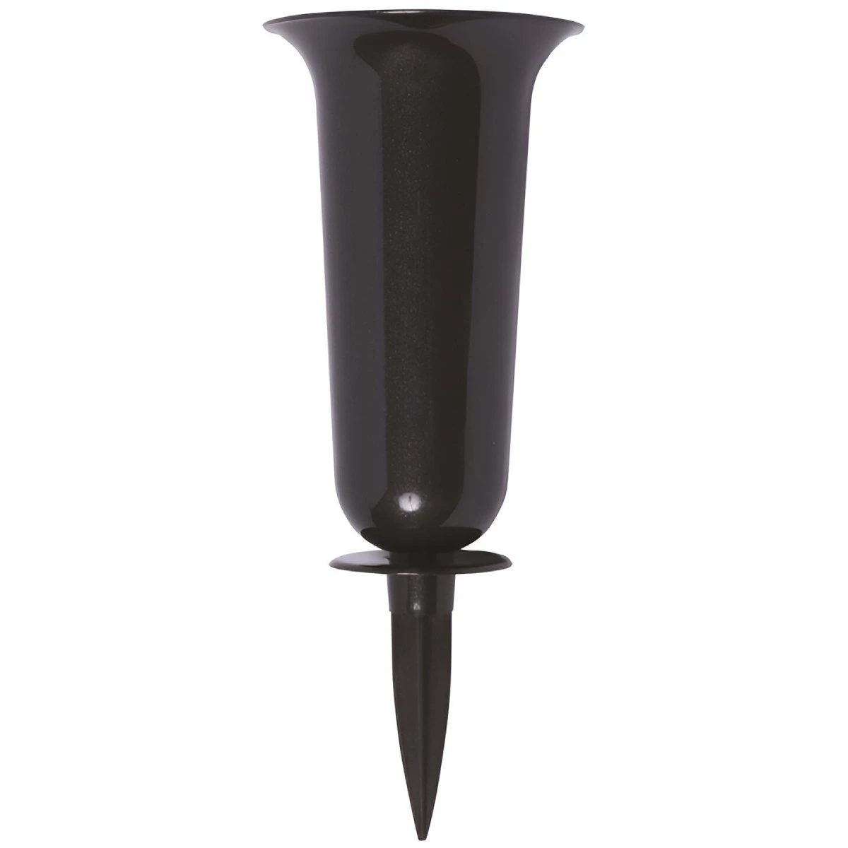 Melna zemē iespraužama vāze kapiem. Izgatavota no augstas kvalitātes plastmasas. Izmērs (D x A) 13 x 32.7 cm, tilpums 1.2 l.
