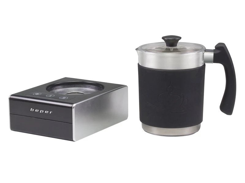 Piena putotājs ar magnētisku pamatni un trauku ar nerūsējošā tērauda korpusu, kas pārklāts ar mīkstu silikonu. Gumijots rokturis un caurspīdīgs vāciņš ar rokturi. 3 funkcijas: uzsildīt līdz 500 ml piena, saputot līdz 250 ml piena, pagatavot līdz 350ml šokolādes. 3 izvēles sildīšanas līmeņi: auksts, karsts, īpaši silts līdz 65°C. LED darbības gaisma un automātiska izslēgšanās. Aprīkots ar 2 maināmām slotioņām sajaukšanai vai putošanai. Trauku var droši mazgāt trauku mazgājamā mašīnā. Aizsardzība pret pārkaršanu.