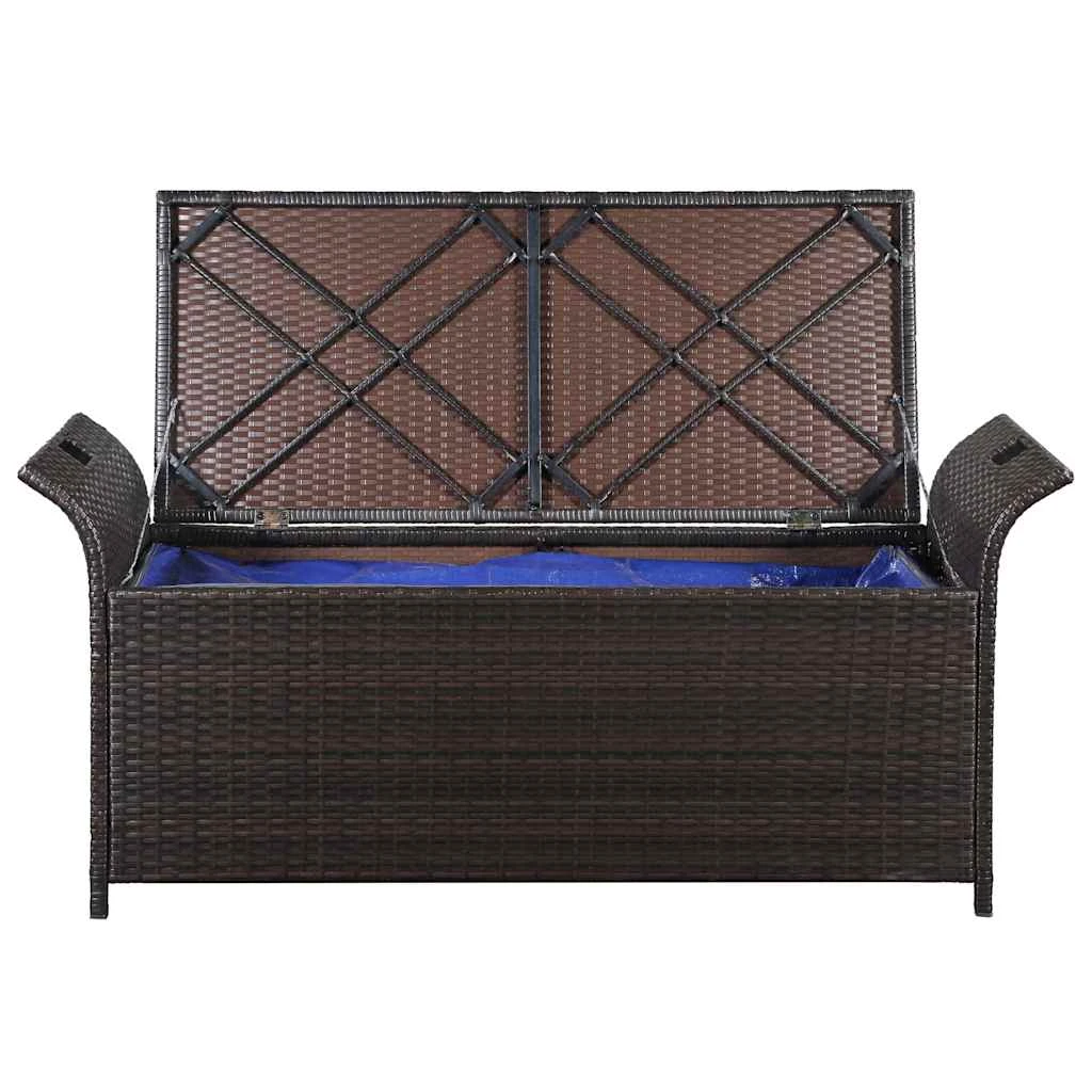 PE (polietilēna) rotangpalmas sols ar kasti mantu glabāšanai kļūs par iecienītāko vietu jūsu dārzā.