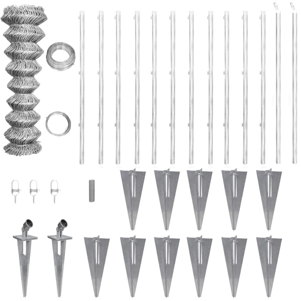 vidaXL stiepļu žogs ar stabiem, mietiņiem, cinkots tērauds, 25x0,8 m