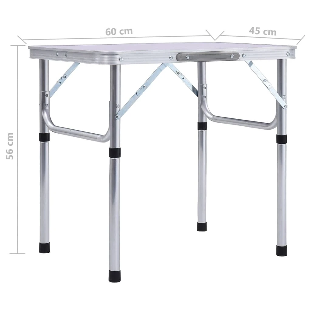 vidaXL saliekams kempinga galds, balts alumīnijs, 60x45 cm