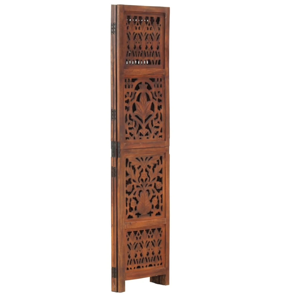 vidaXL 3-paneļu aizslietnis, brūns, 120x165 cm, roku darbs, masīvkoks
