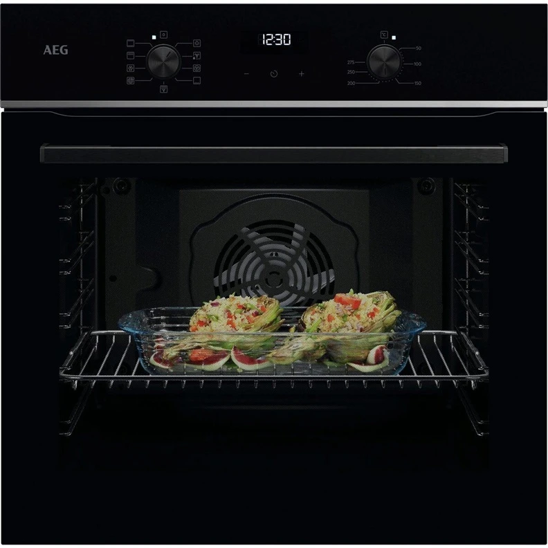 Zīmols- AEG. Kolekcija- „SurroundCook“. Modelis- TU5AB21FSB. Platums- 59.4 cm. Dziļums- 56.8 cm. Augstums- 59.4 cm. Krāsa- Melna. Svars- 29.3 kg. Korpusa materiāls- Stikls. Energoefektivitātes klase- A+. Jauda- 3490 W. Cepeškrāsns veids- Elektriskā. Krāsns tilpums- 72 l. Cepeškrāsns durvju stiklu skaits- 2. Cepeškrāsns maksimālā temperatūra- 275 °C. Cepeškrāsns funkciju skaits- 9. Ar apgaismojumu- Jā. Grils- Jā. Konvekcija- Jā. Termostats- Jā. Tīrīšanas veids- Aqua Clean. Ekrāns- Jā. Taimeris- Jā. Vadība- Divu zonu mehāniskais, Sensoru, Elektroniska. Teleskopiskās vadotnes- 1 līmeņa. Cepšanas paliktņu skaits- 1. Bērnu drošības funkcija- Nē. Režģu skaits- 1. Pieslēguma kabelis- Jā. Spraudnis- Jā. Cepšanas termometrs- Nē. Obligātā garantija- 24 mēn.