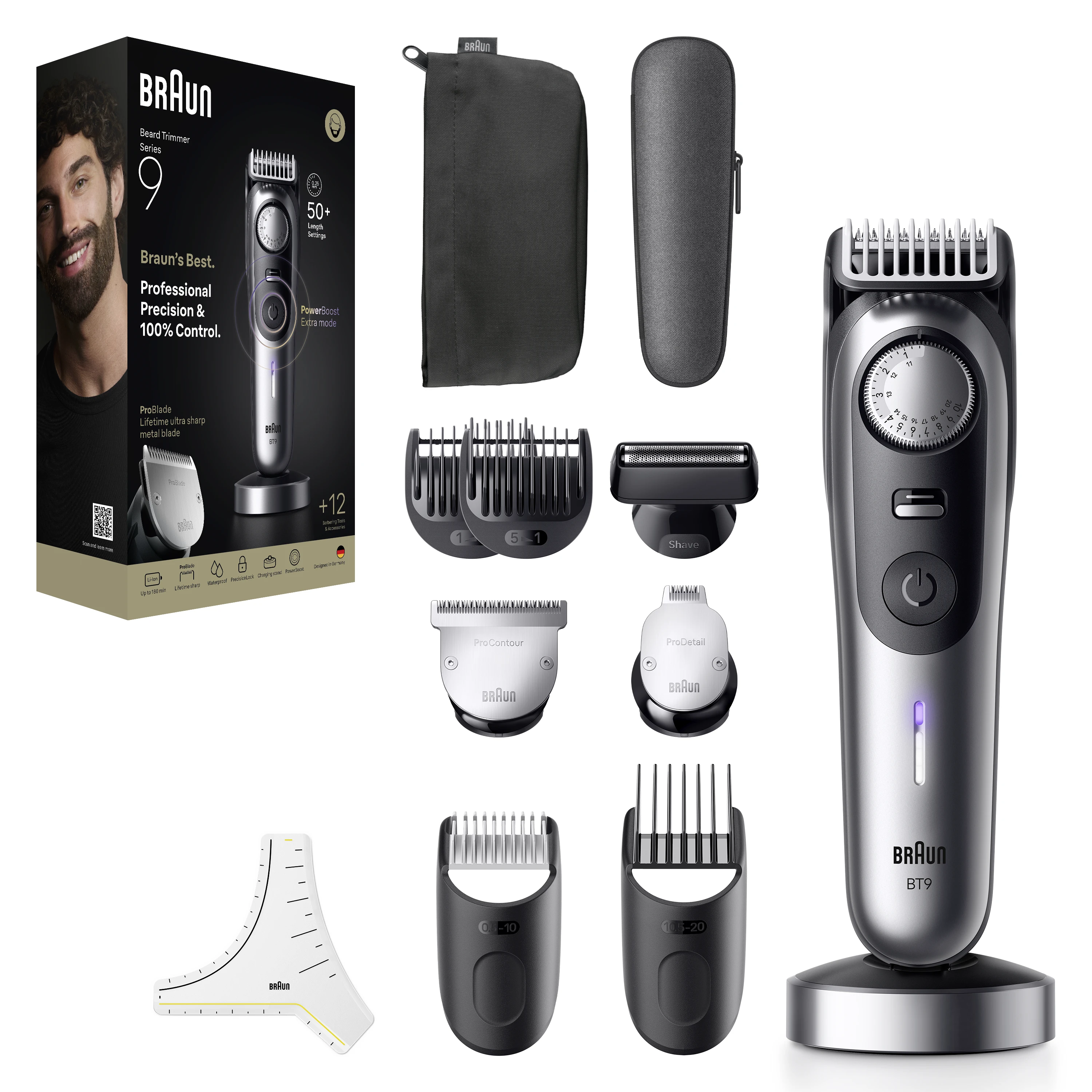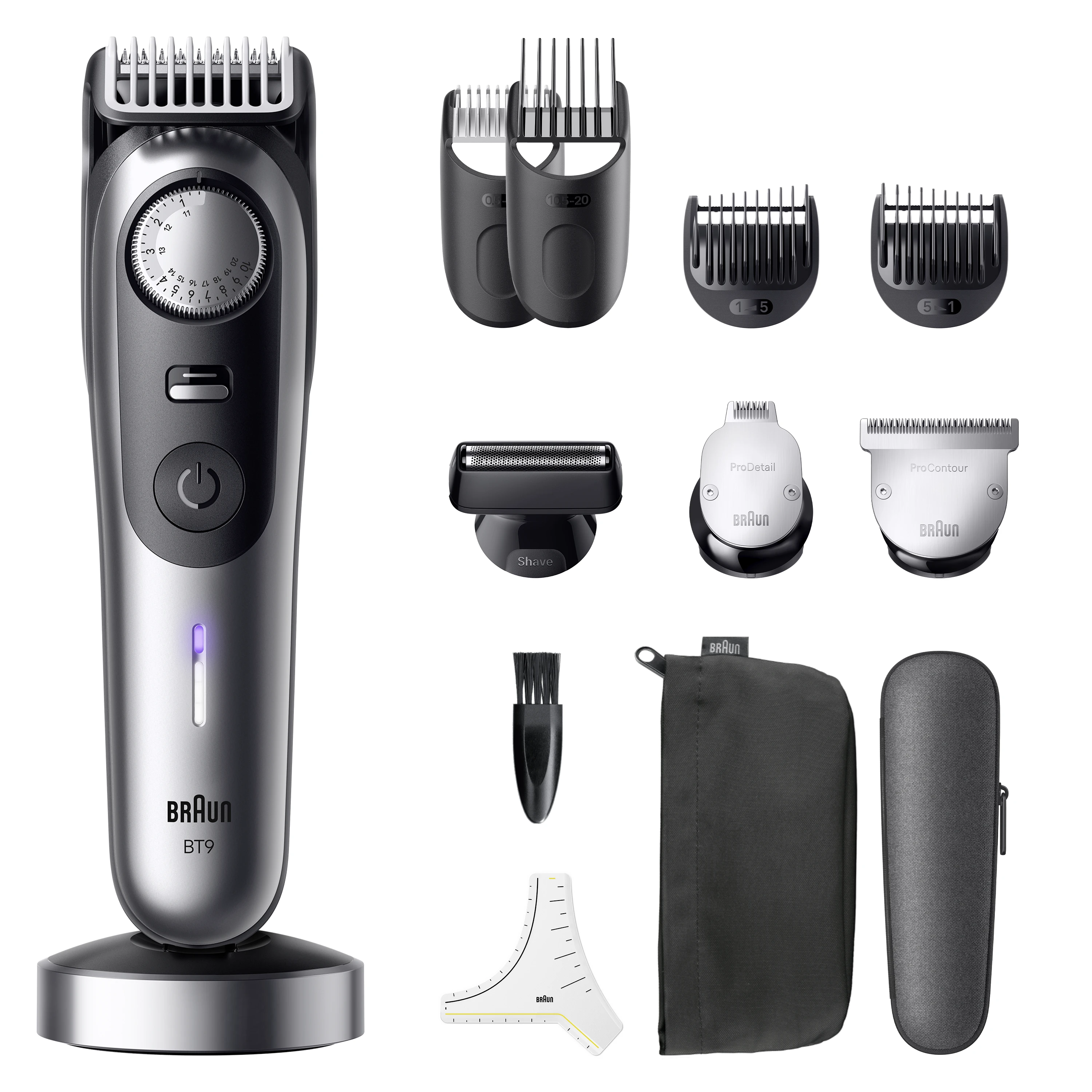 Zīmols- Braun. Sērija- Series 9. Modelis- BT9560. Krāsa- Melna. Skūšanas sistēma- Šuvēm. Mitrās skūšanās iespēja- Jā. Skūšanās galviņu skaits- 3. Garuma iestatījuma diapazons- 0.5 - 20mm. Akumulatora tips- Li-Ion. Elektroapgāde- Akumulators. Ātra uzlāde- Nē. Darbības ilgums pēc uzlādes- 180 min. Var mazgāt ar ūdeni- Jā. Ekrāns- Nē. Trimmeris- Jā. Obligātā garantija- 24 mēn.