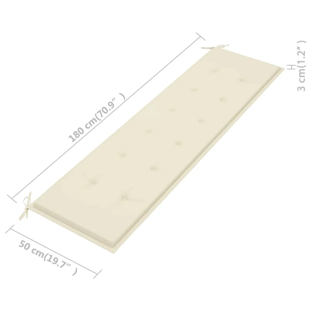 vidaXL dārza sols ar krēmkrāsas matraci, 175 cm, masīvs tīkkoks