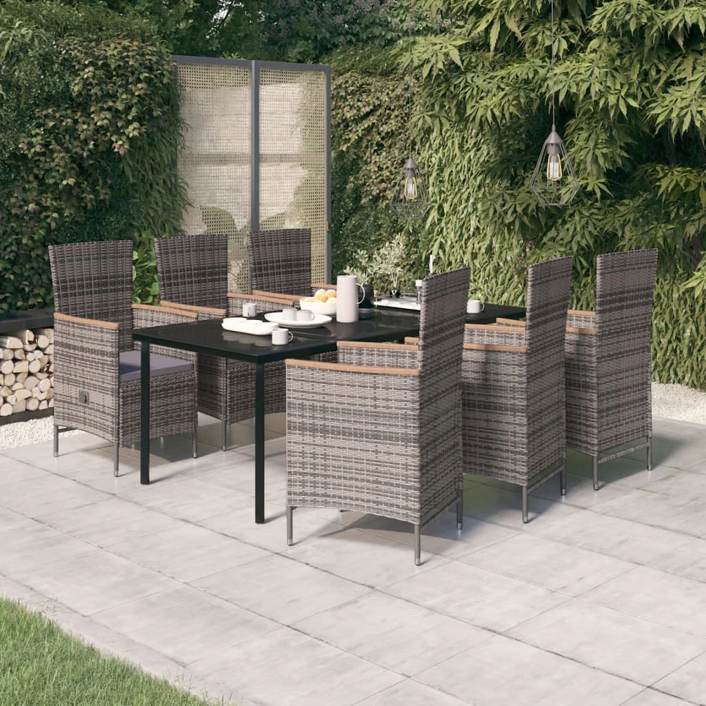 vidaXL 7-daļīgs dārza mēbeļu komplekts ar matračiem, pelēks