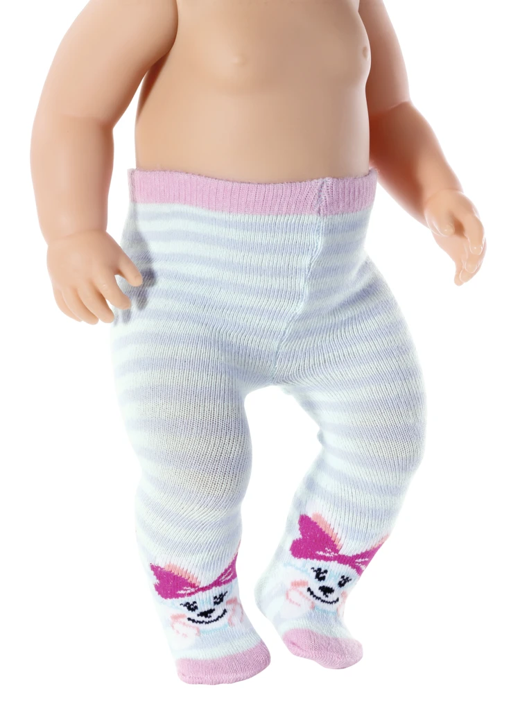 Zeķubiksēm jābūt ērtām un mīkstām, bet tomēr piemērotām kā otrajai ādai. Zeķubikses BABY born divu iepakojumā ir izgatavotas no siltas vilnas un piedāvā daudz pārvietošanās brīvības un prieka. Viņas dzīvnieku draugi smaida no autiņiem pārklātas dibena vai kājām. Suns Bello acīmredzami jūtas kā mājās, komplektā ar vienu dzeltenu un vienu zilu, baltu, sarkanu un ar lasi svītrainu zeķubikšu pāri. Viņa mazais zaķa draugs dod priekšroku rozā un svītrainiem pasteļtoņiem. Berta Pīle un Bruno Lācis kopīgo komplektu smilškrāsā un purpursarkanā krāsā. Kvalitatīvs apģērbs zīdainim BABY Born zīdainim. Pilnveidotai, daudzveidīgai un ilgstošai izklaidei rotaļās.