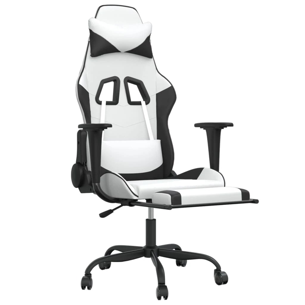 vidaXL datorspēļu krēsls ar kāju balstu, balta un melna mākslīgā āda