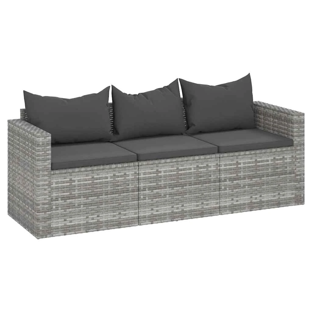 vidaXL Trivietė sodo sofa su pagalvėlėmis, pilkos spalvos, poliratanas