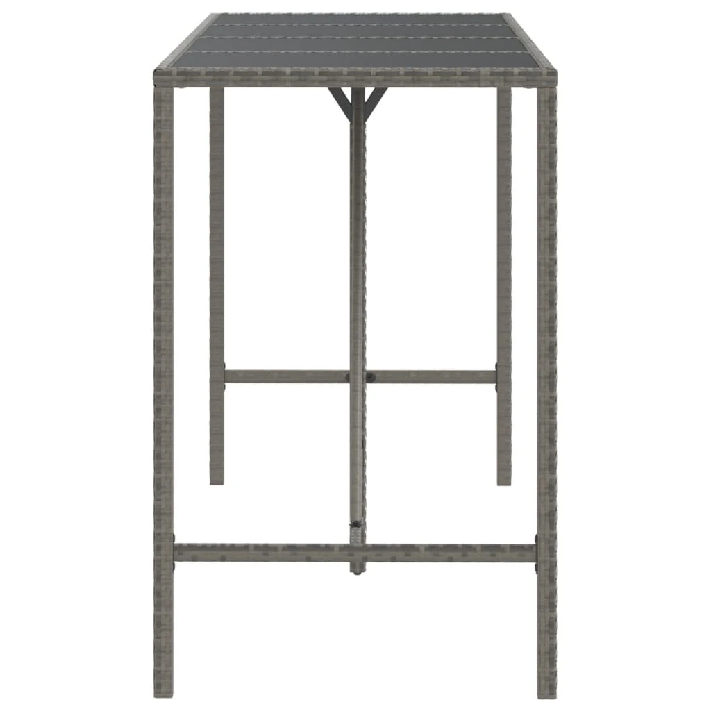vidaXL Stalas su stikliniu stalviršiu, pilkas, 180x70x110cm, ratanas