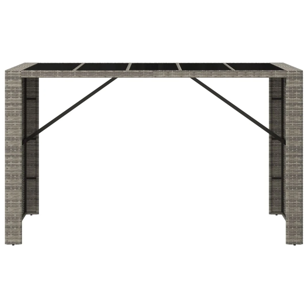 vidaXL Stalas su stikliniu stalviršiu, pilkas, 185x80x110cm, ratanas