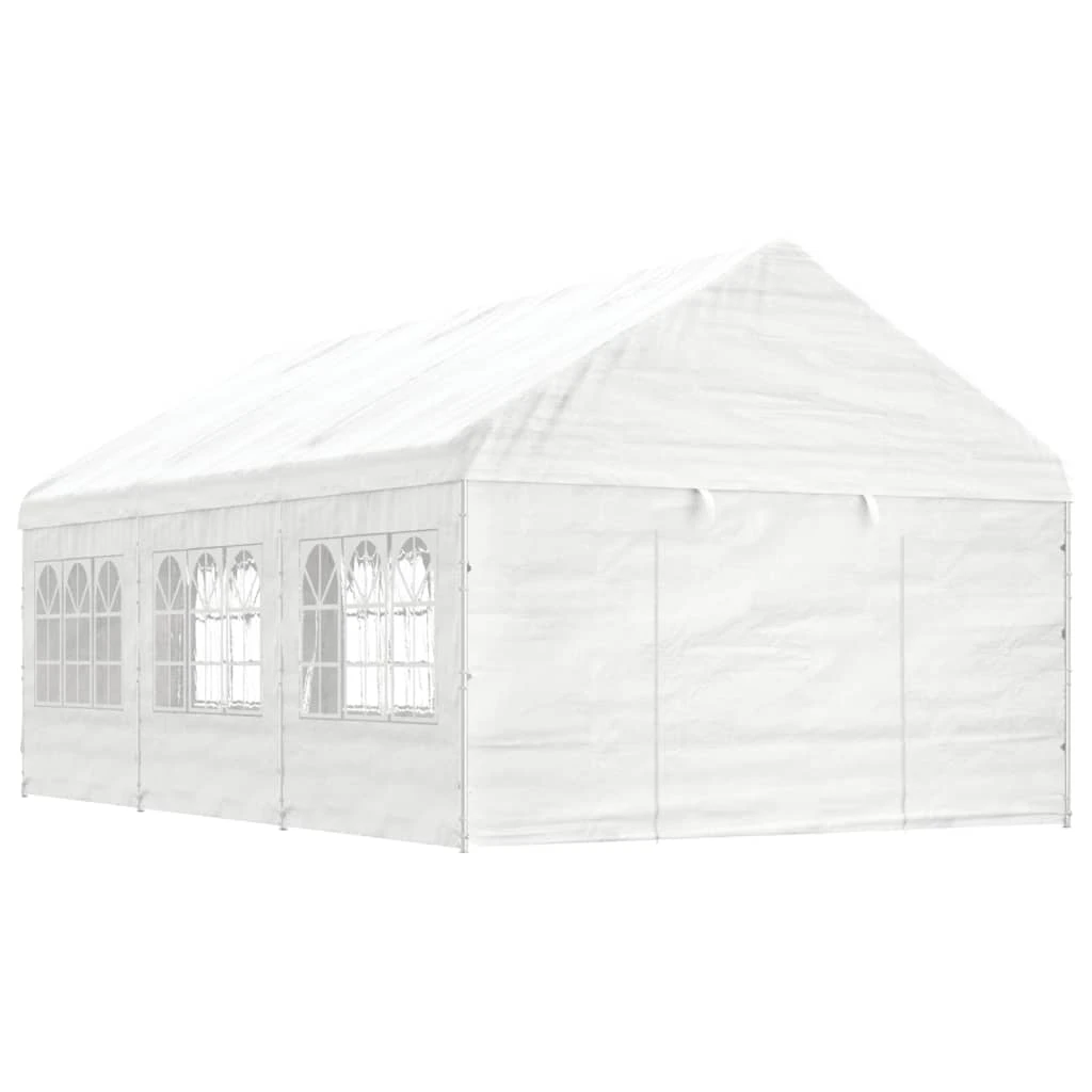 vidaXL Pavėsinė su stogu, balta, 6,69x4,08x3,22m, polietilenas