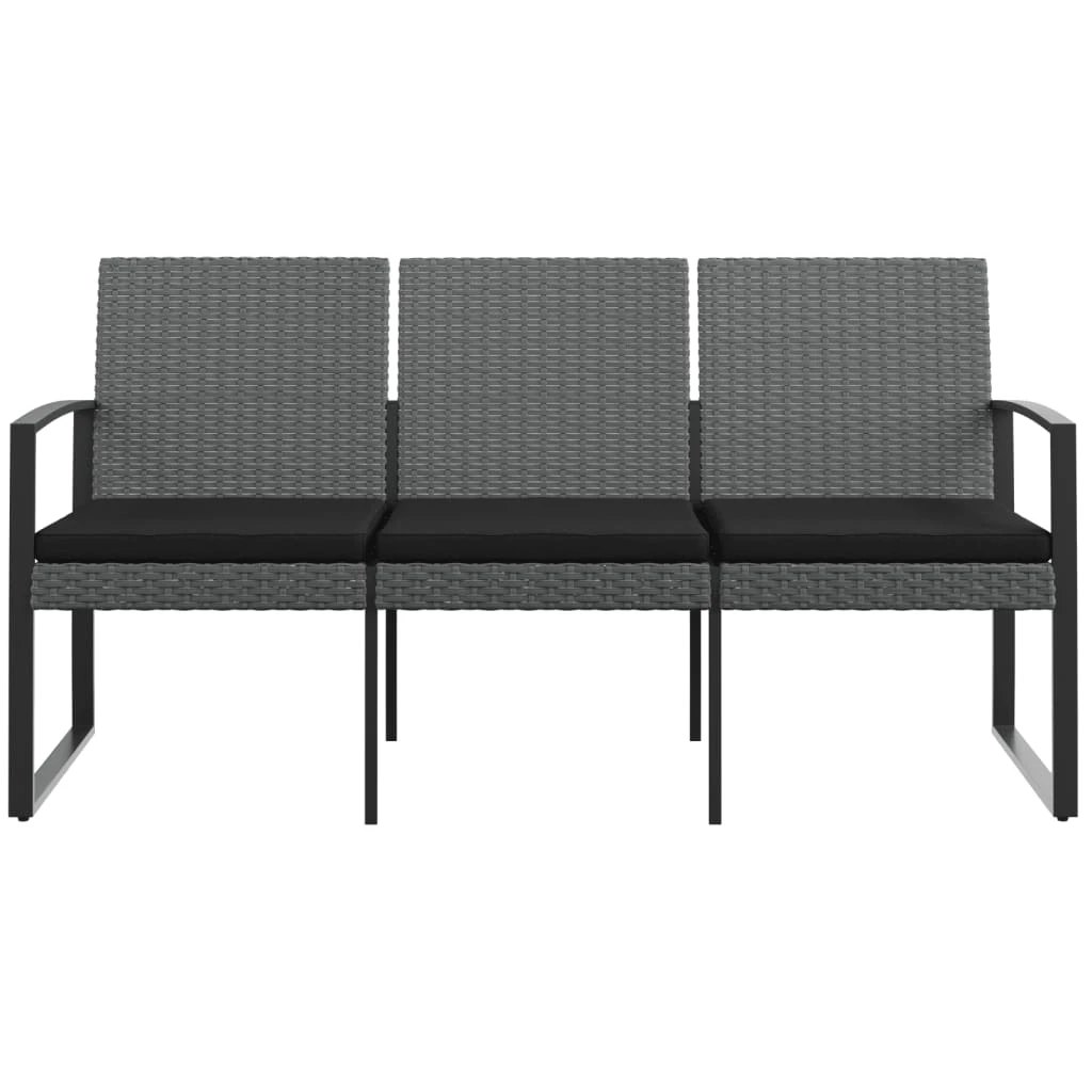vidaXL Trivietis sodo suoliukas su pagalvėlėmis, pilkas, PP ratanas