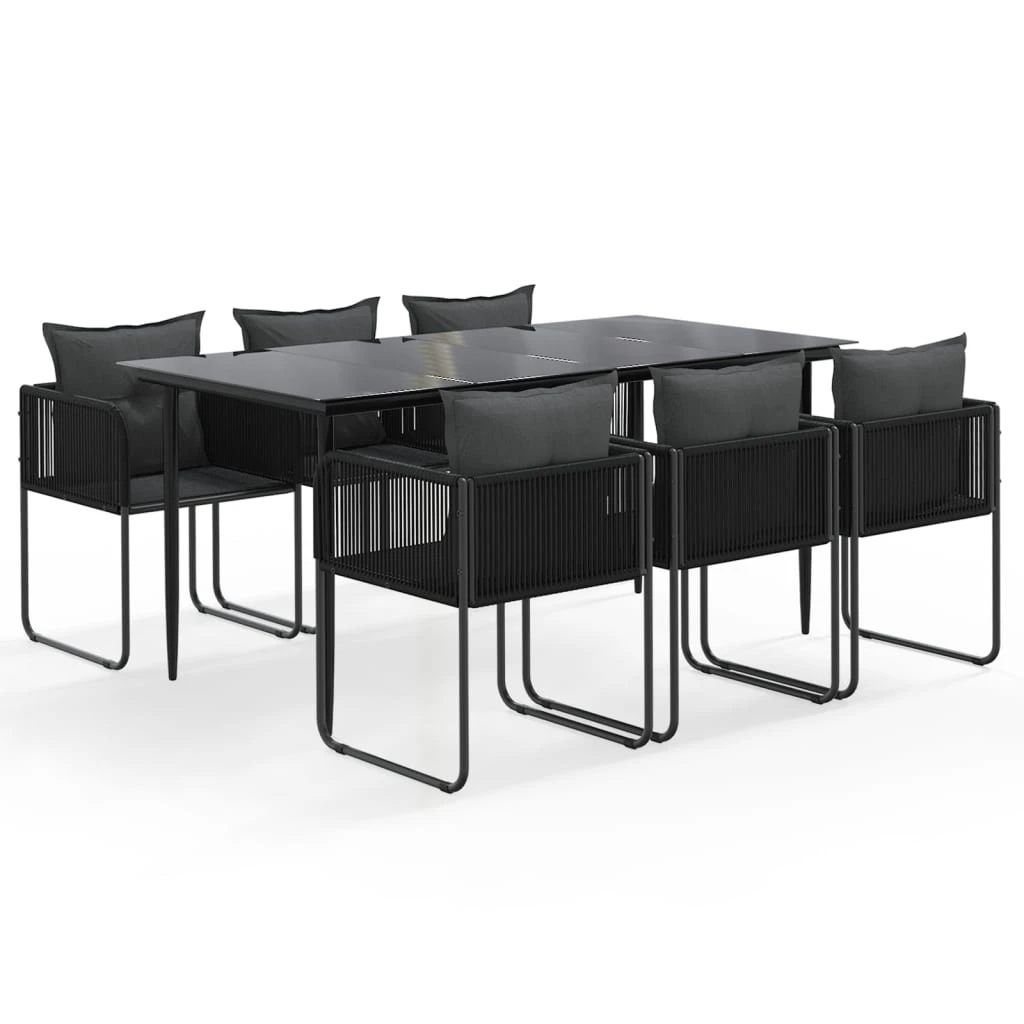 vidaXL Sodo valgomojo baldų komplektas, 7 dalių, juodos spalvos