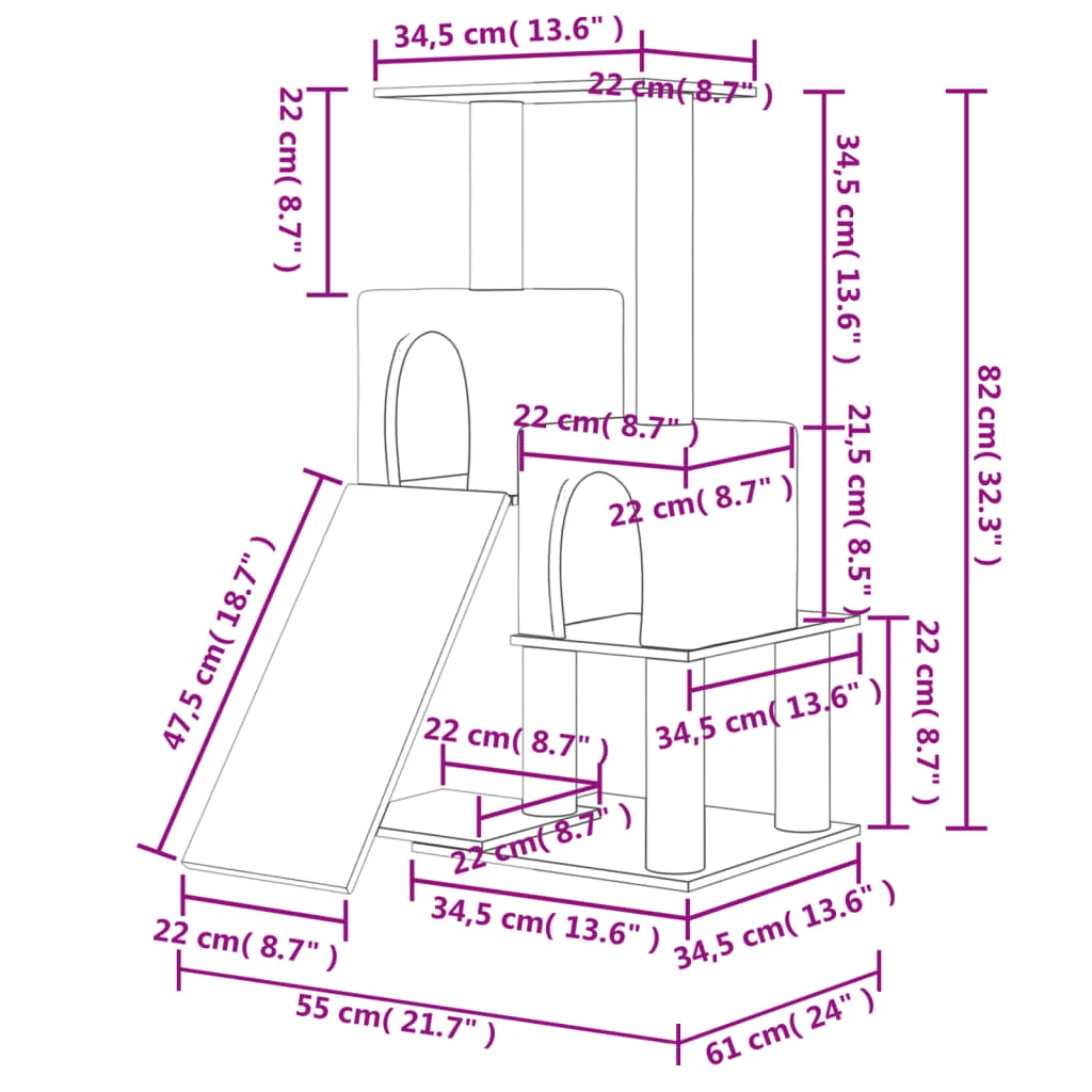 - Viskas viename bokštas katėms: kelių aukštų baldas katėms turi 2 namelius, kopėčias ir platformas, tad jūsų katės turės puikią vietą laipioti, tupėti, draskyti, slėptis bei pailsėti.