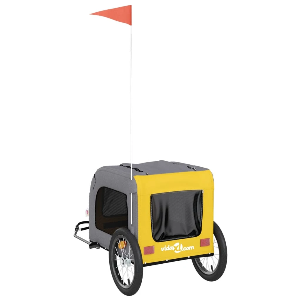 vidaXL Dviračio priekaba augintiniams, geltona-pilka, audinys-geležis