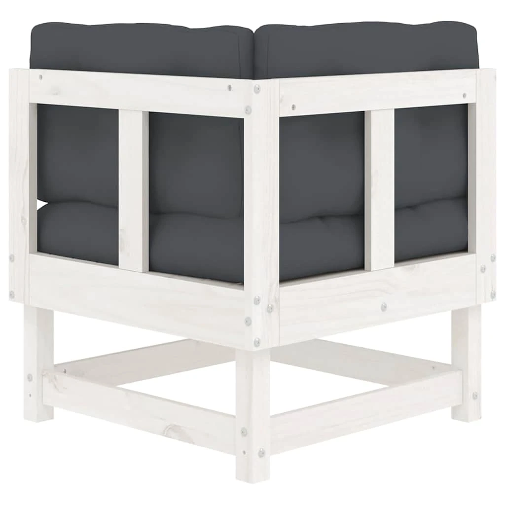 vidaXL Kampinė sofos dalis su pagalvėlėmis, balta, pušies masyvas