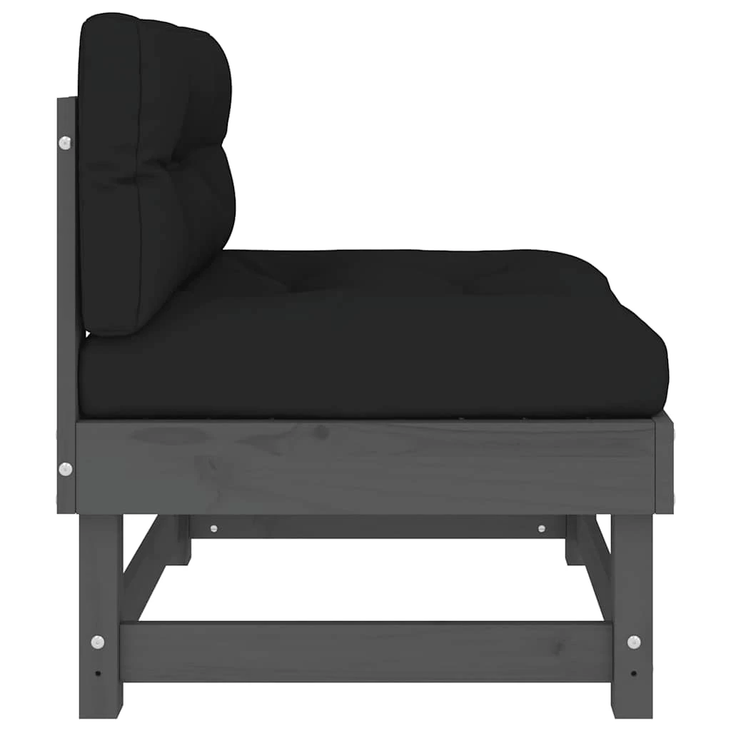 vidaXL Vidurinė sofos dalis su pagalvėlėmis, pilka, pušies masyvas