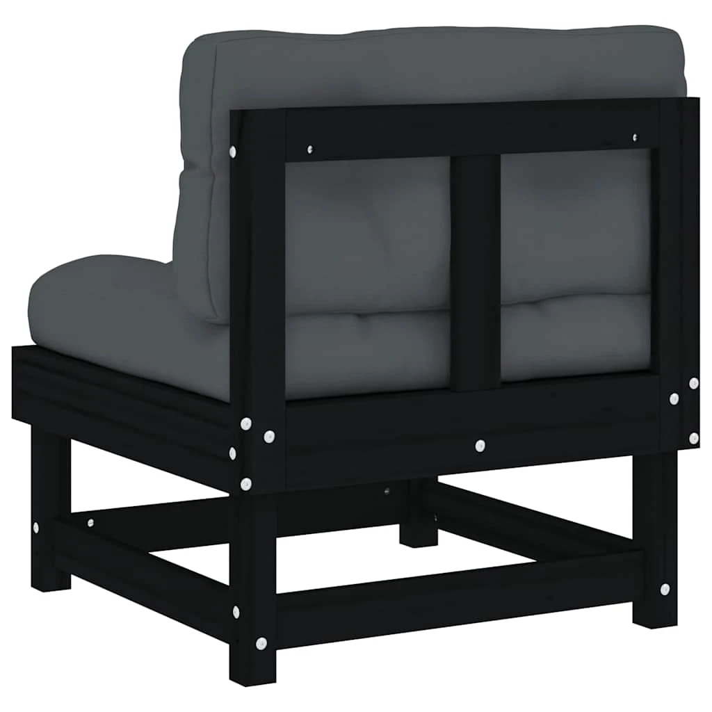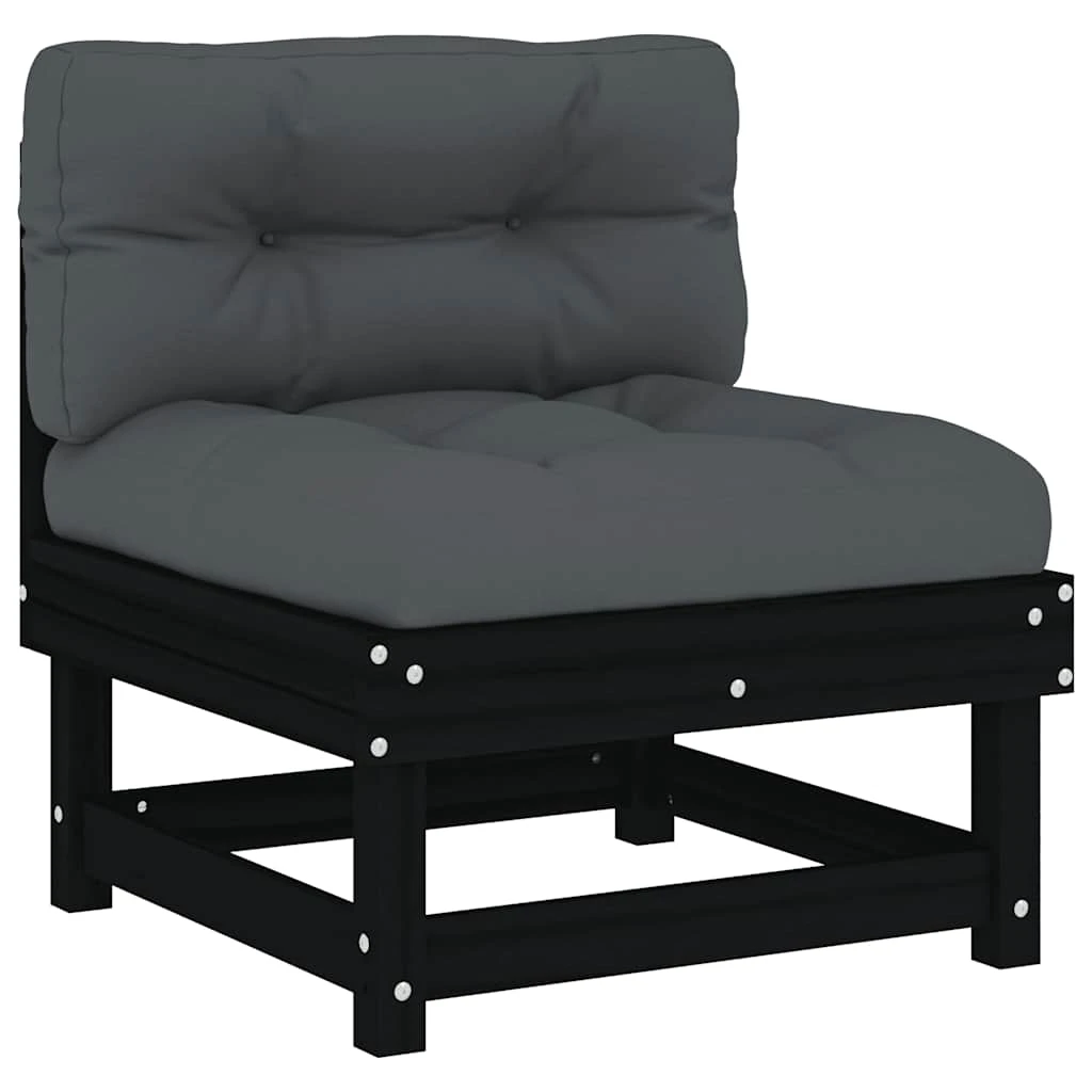 vidaXL Vidurinė sofos dalis su pagalvėlėmis, juoda, pušies masyvas