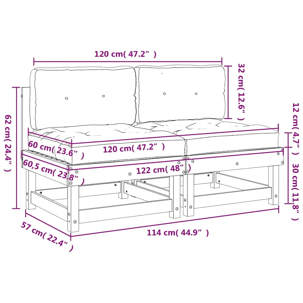vidaXL Vidurinės sofos dalys su pagalvėlėmis, 2vnt., pušies masyvas