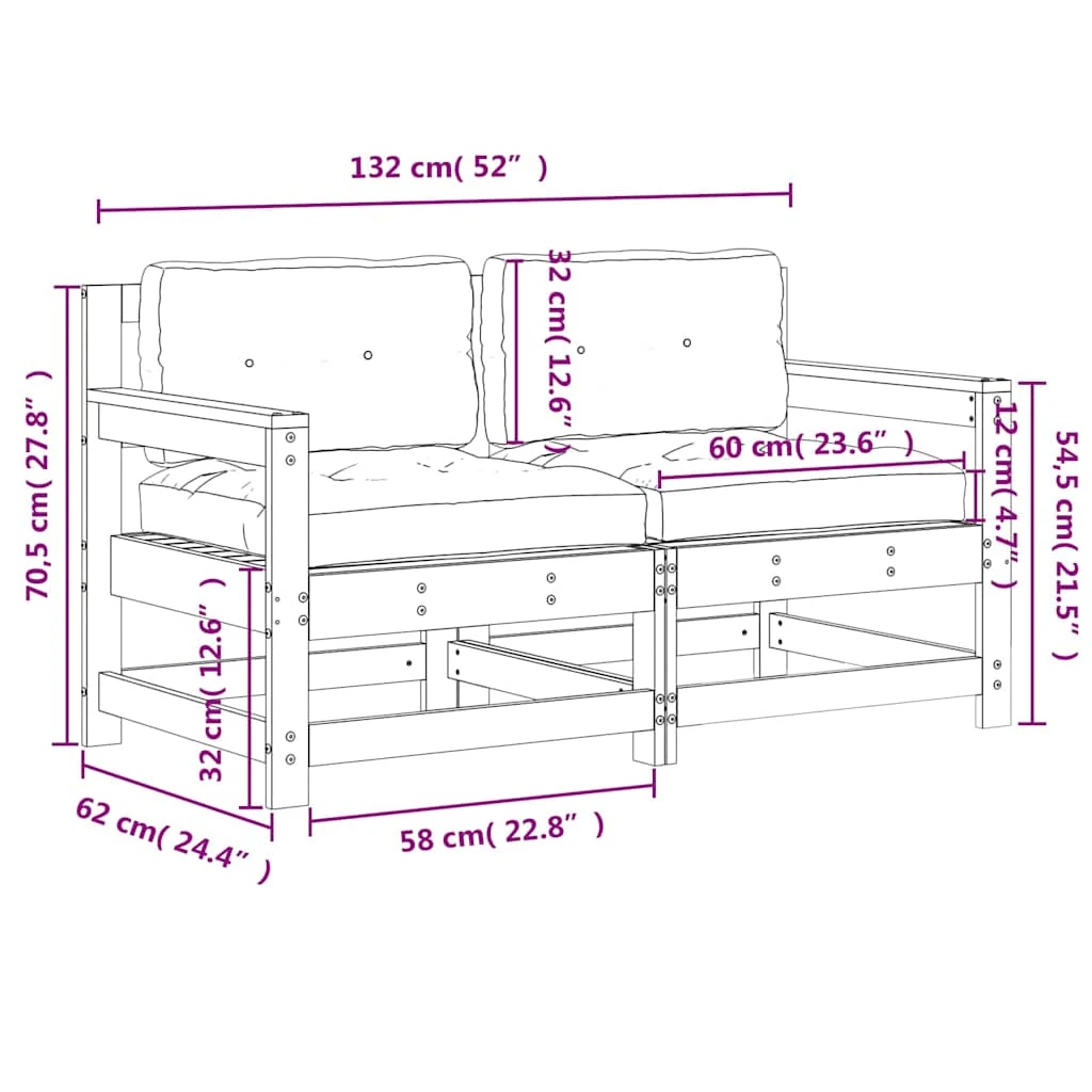 vidaXL Sodo kėdės su pagalvėlėmis, 2vnt., impregnuota pušies mediena