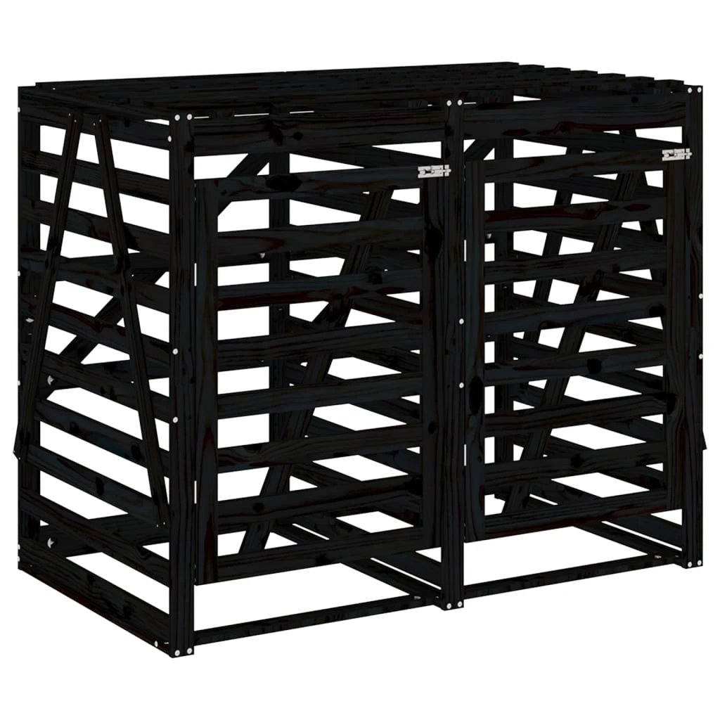 vidaXL Dviguba konteinerių pastogė, juoda, pušies medienos masyvas