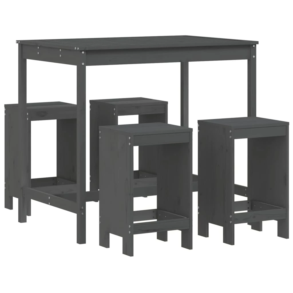 vidaXL Sodo baro baldų komplektas, 5 dalių, pilkas, pušies masyvas
