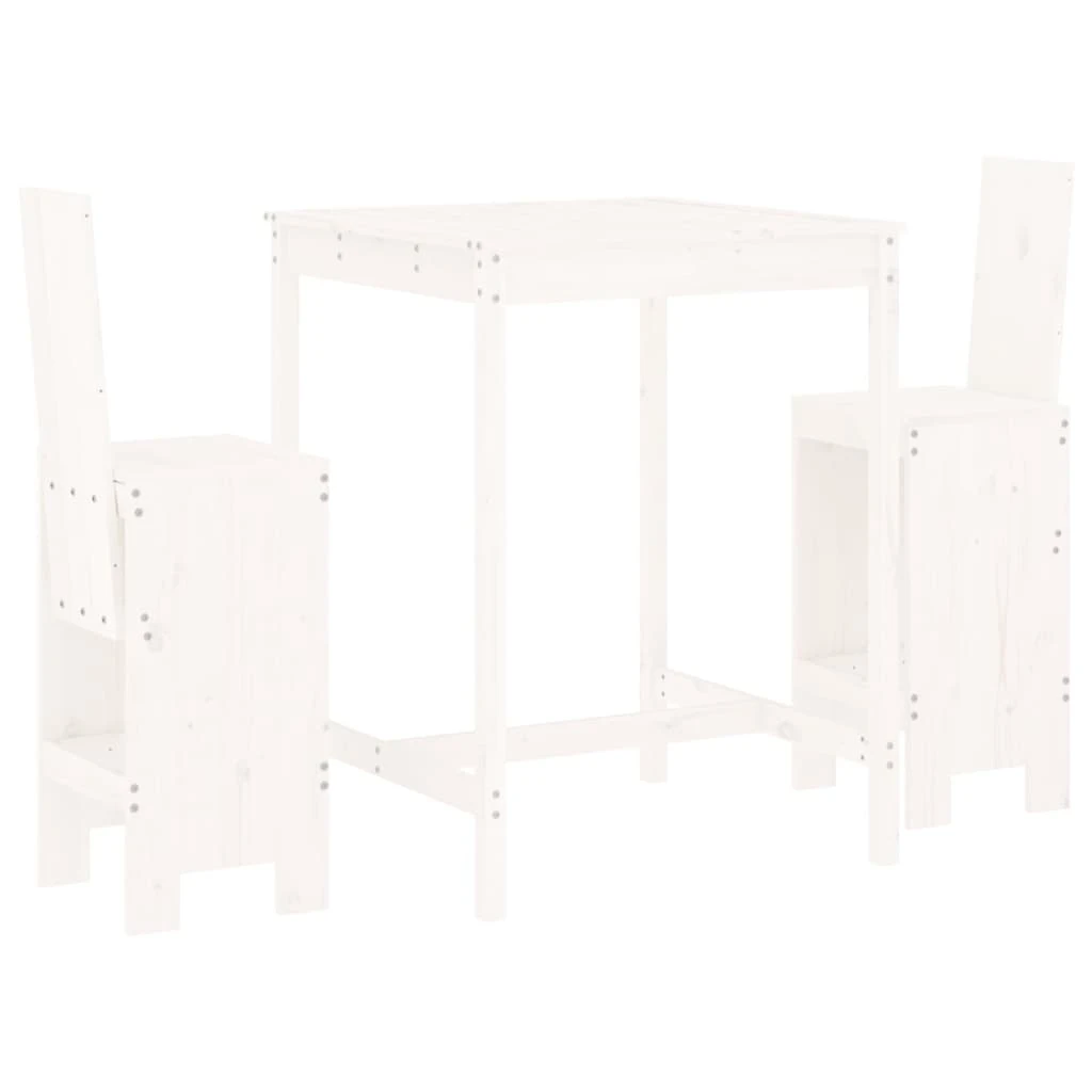 vidaXL Sodo baro baldų komplektas, 3 dalių, baltas, pušies masyvas