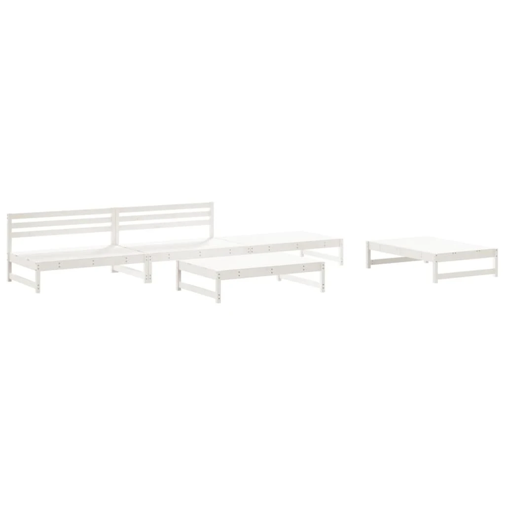 vidaXL Sodo poilsio baldų komplektas, 5 dalių, baltas, pušies masyvas