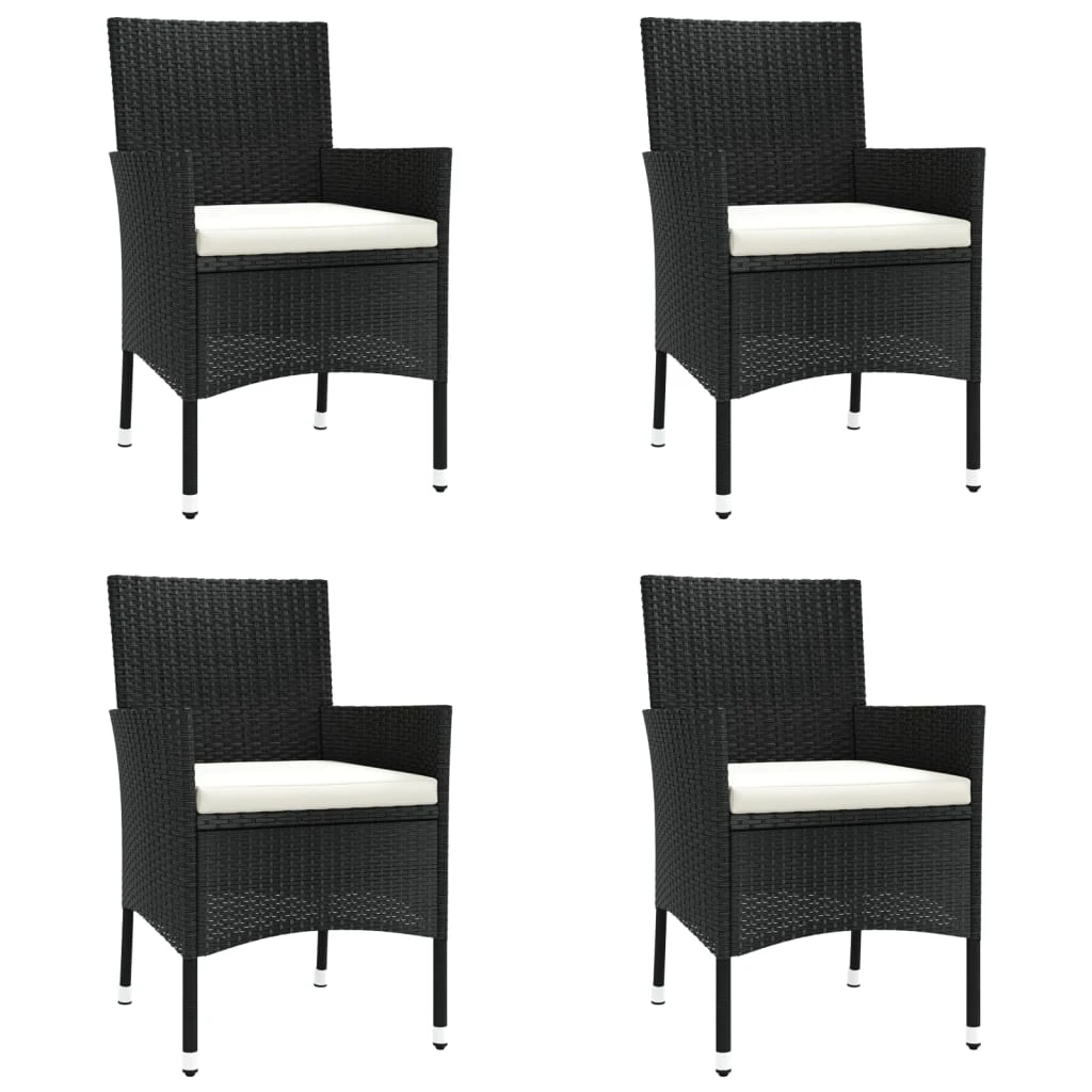 vidaXL Sodo bistro komplektas su pagalvėmis, 5 dalių, juodas, ratanas