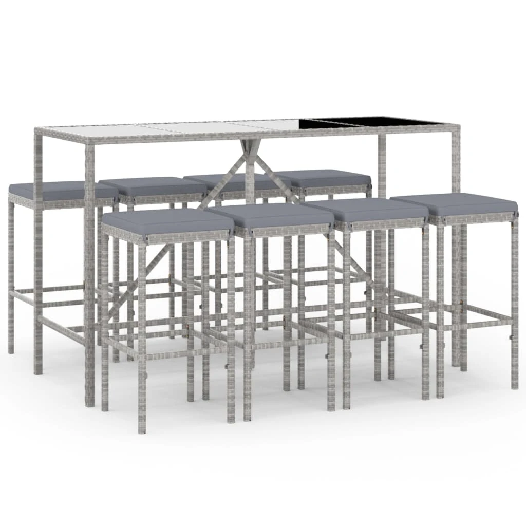 vidaXL Sodo komplektas su pagalvėlėmis, 9 dalių, pilkas, poliratanas