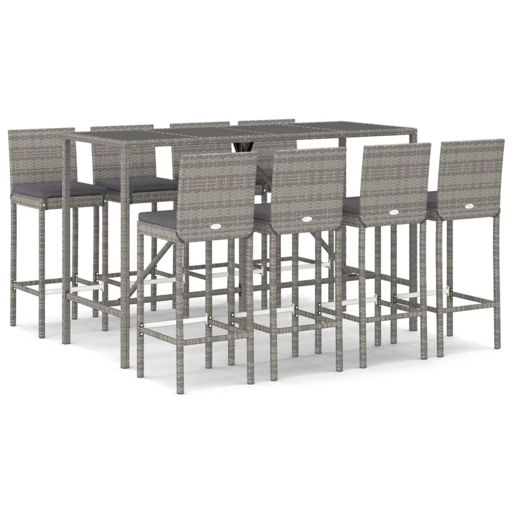 vidaXL Sodo komplektas su pagalvėlėmis, 9 dalių, pilkas, poliratanas