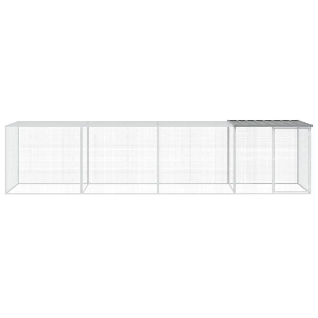 vidaXL Narvas viščiukams su stogu, pilkas, 403x98x90cm, plienas