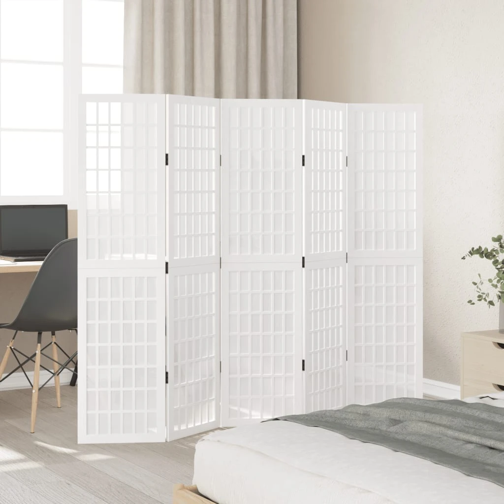 vidaXL Kambario pertvara, 5 segmentai, balta, paulovnijos masyvas