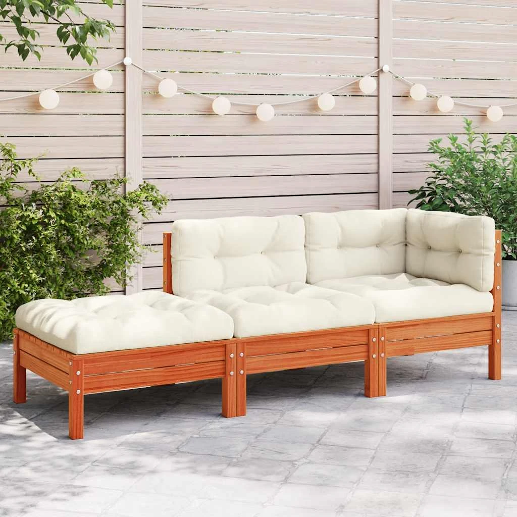 Ši pokalbiams su šeima ir draugais ar tiesiog mėgavimuisi oru tiksianti medinė trivietė sodo sofa su pagalvėlėmis ir pakoja taps puikia jūsų sodo, terasos ar kiemo detale.