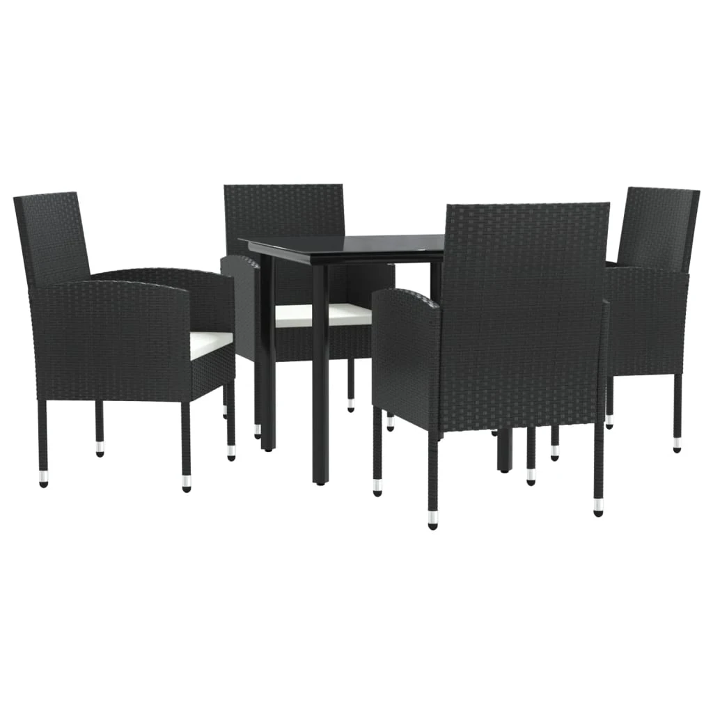 vidaXL Sodo valgomojo komplektas, 5 dalių, juodas, poliratanas-plienas