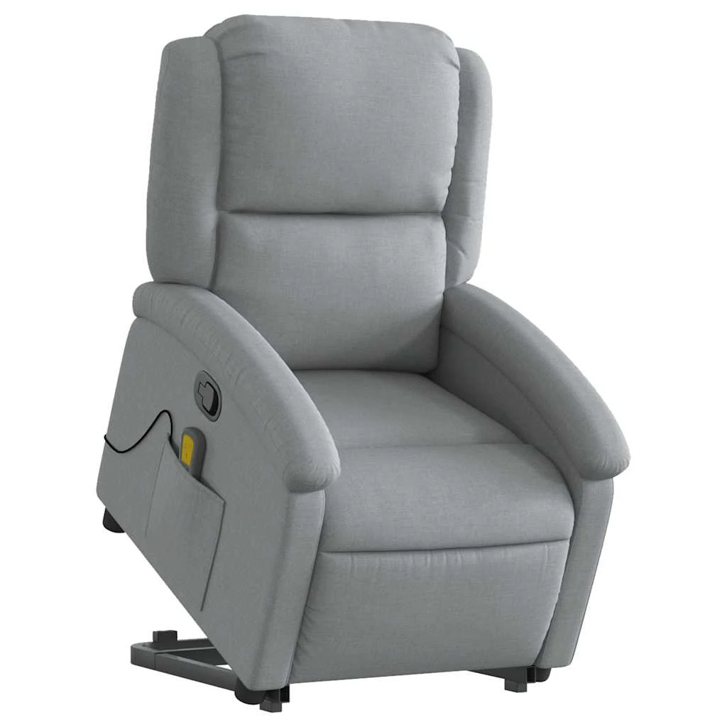 vidaXL Atsistojantis masažinis krėslas, šviesiai pilkas, audinys