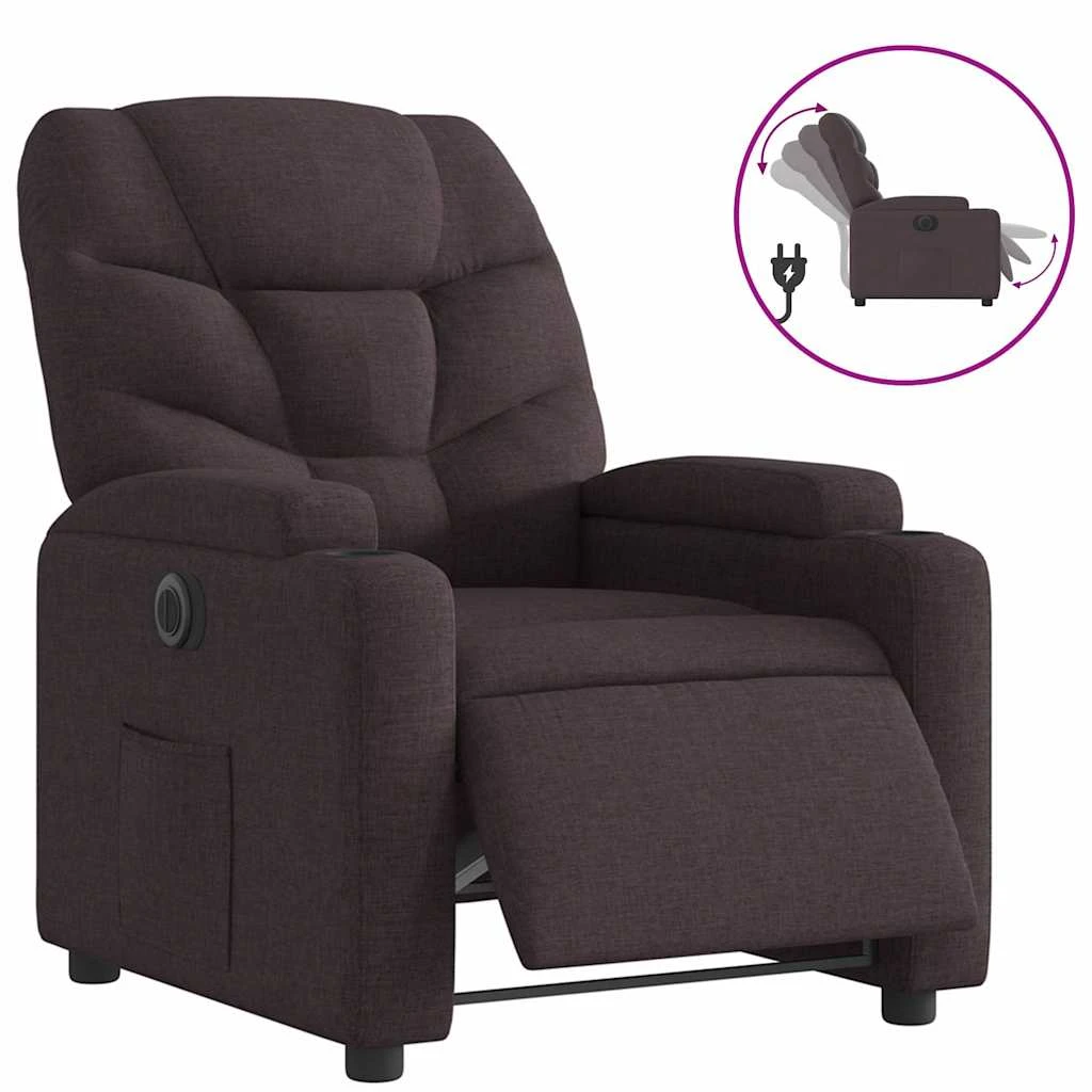 vidaXL Elektrinis atlošiamas krėslas, tamsiai rudos spalvos, audinys
