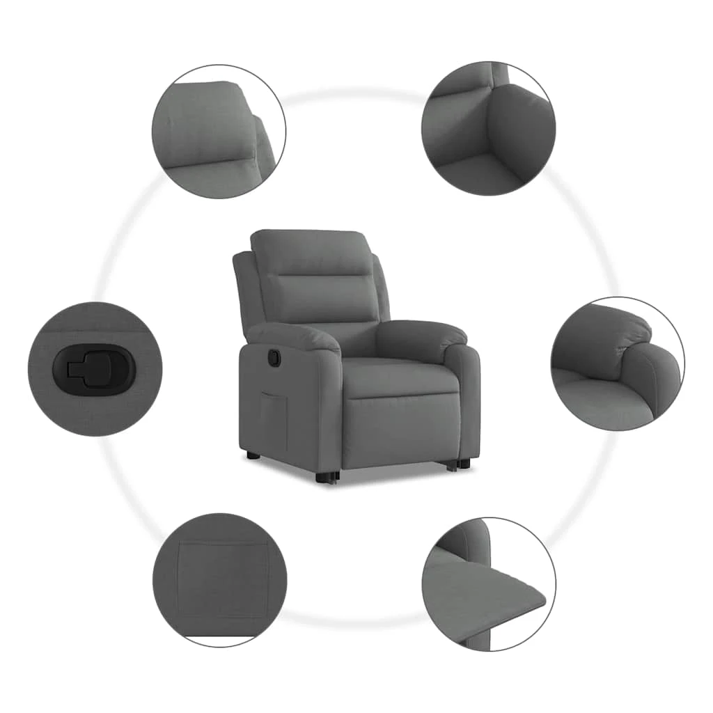 vidaXL Atsistojantis atlošiamas krėslas, tamsiai pilkas, audinys