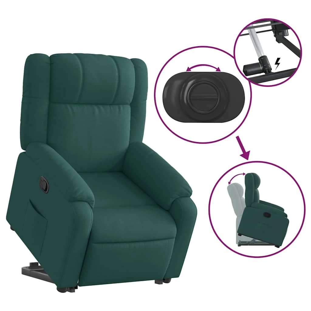 vidaXL Atsistojantis atlošiamas krėslas, tamsiai žalias, audinys