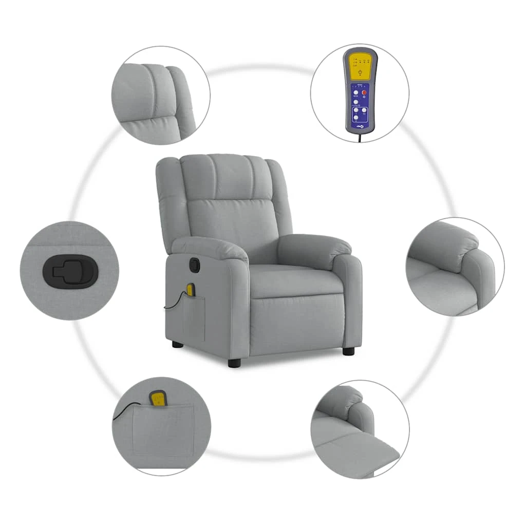 vidaXL Atlošiamas masažinis krėslas, šviesiai pilkos spalvos, audinys