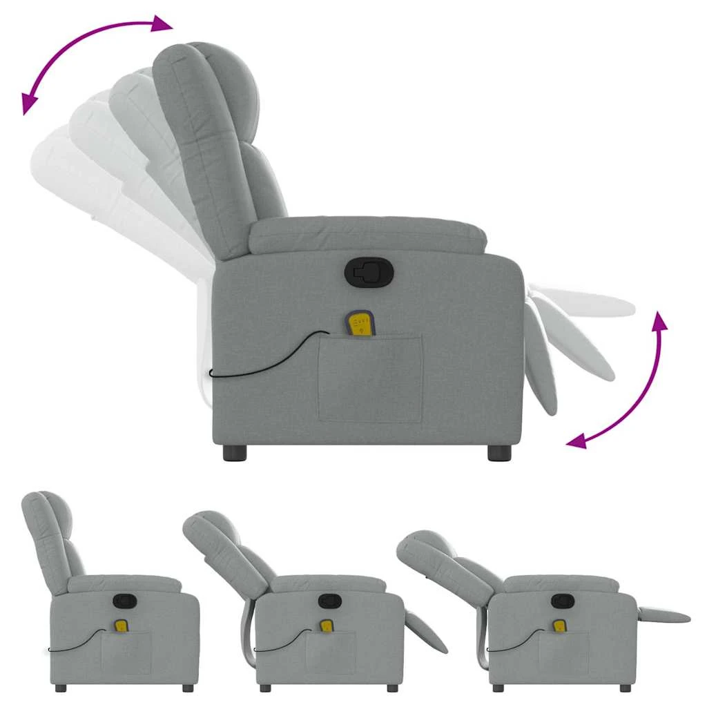 vidaXL Atsistojantis masažinis krėslas, pilkos spalvos, audinys