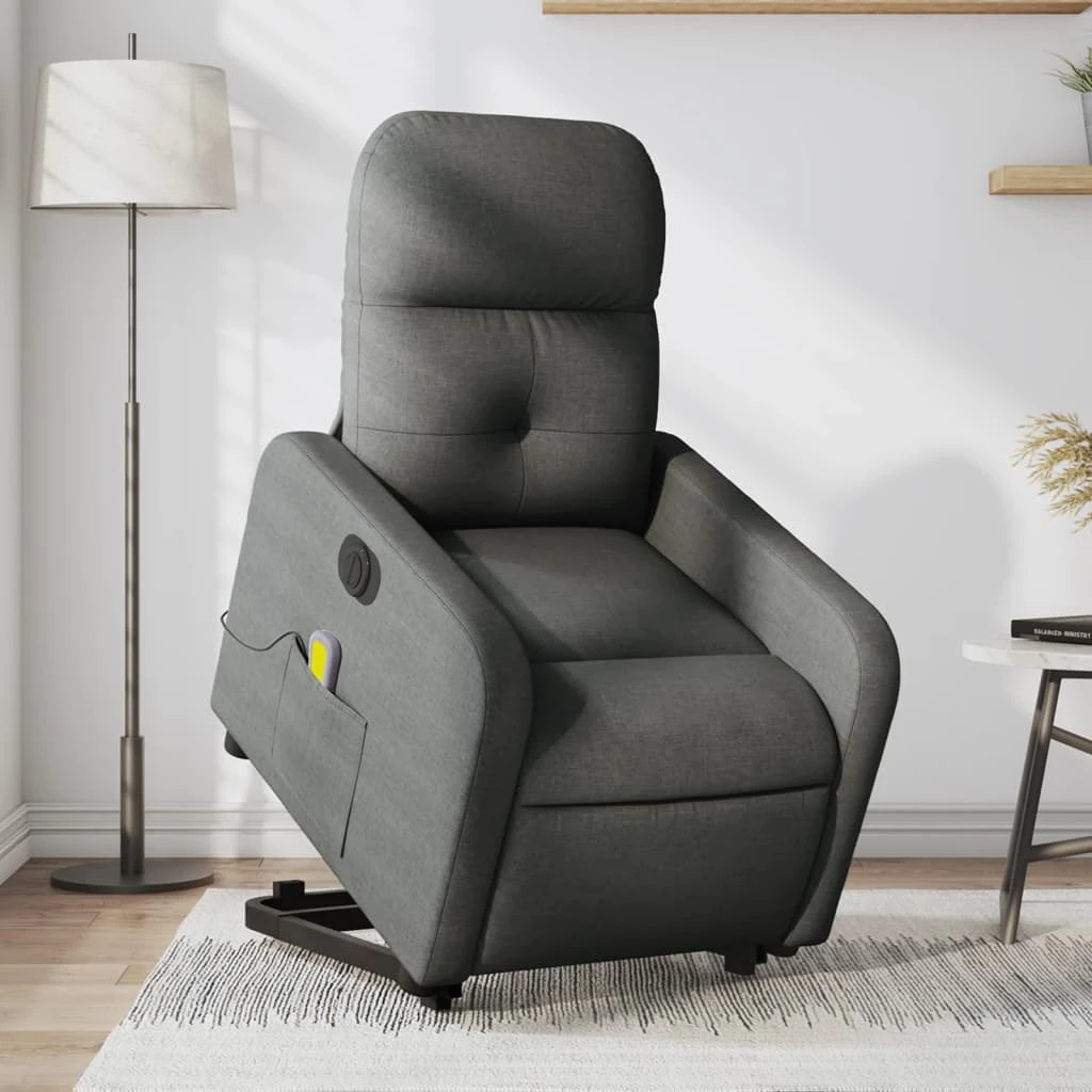 vidaXL Atsistojantis masažinis krėslas, tamsiai pilkas, audinys