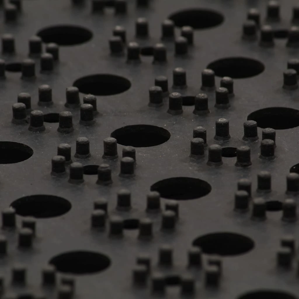 - Neslystantis dizainas: siekiant užtikrinti geresnį sukibimą ir stabilumą, šis kilimėlis prie įėjimo turi paaukštintus taškus ir yra briaunuotos tekstūros, tad naudojimo metu jis neslidinės.