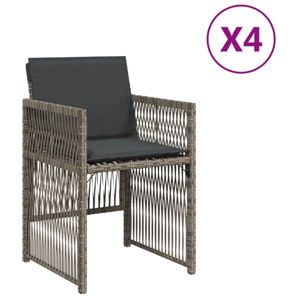 vidaXL Sodo kėdės su pagalvėlėmis, 4vnt., pilkos spalvos, poliratanas