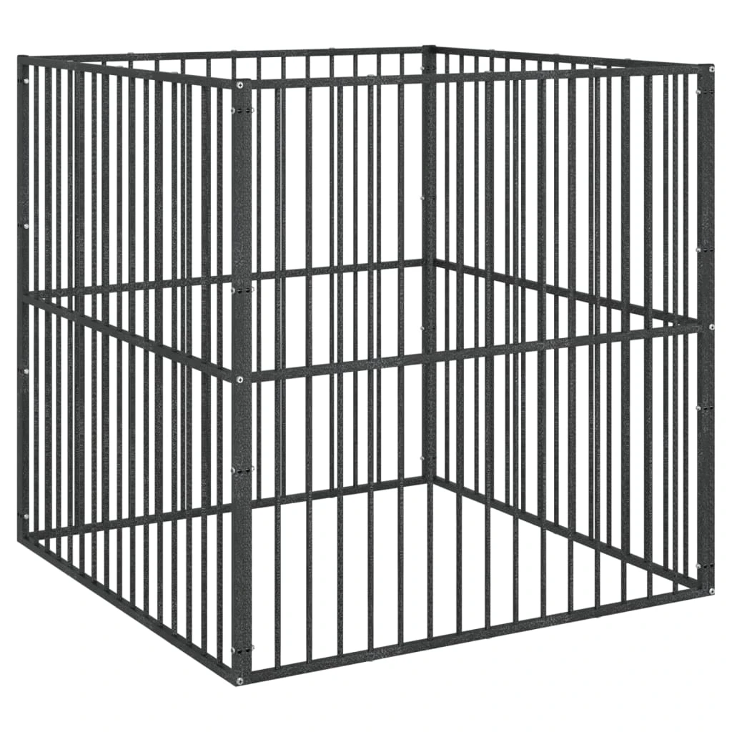 vidaXL Aptvaras šunims, 4 segmentai, juodas, galvanizuotas plienas