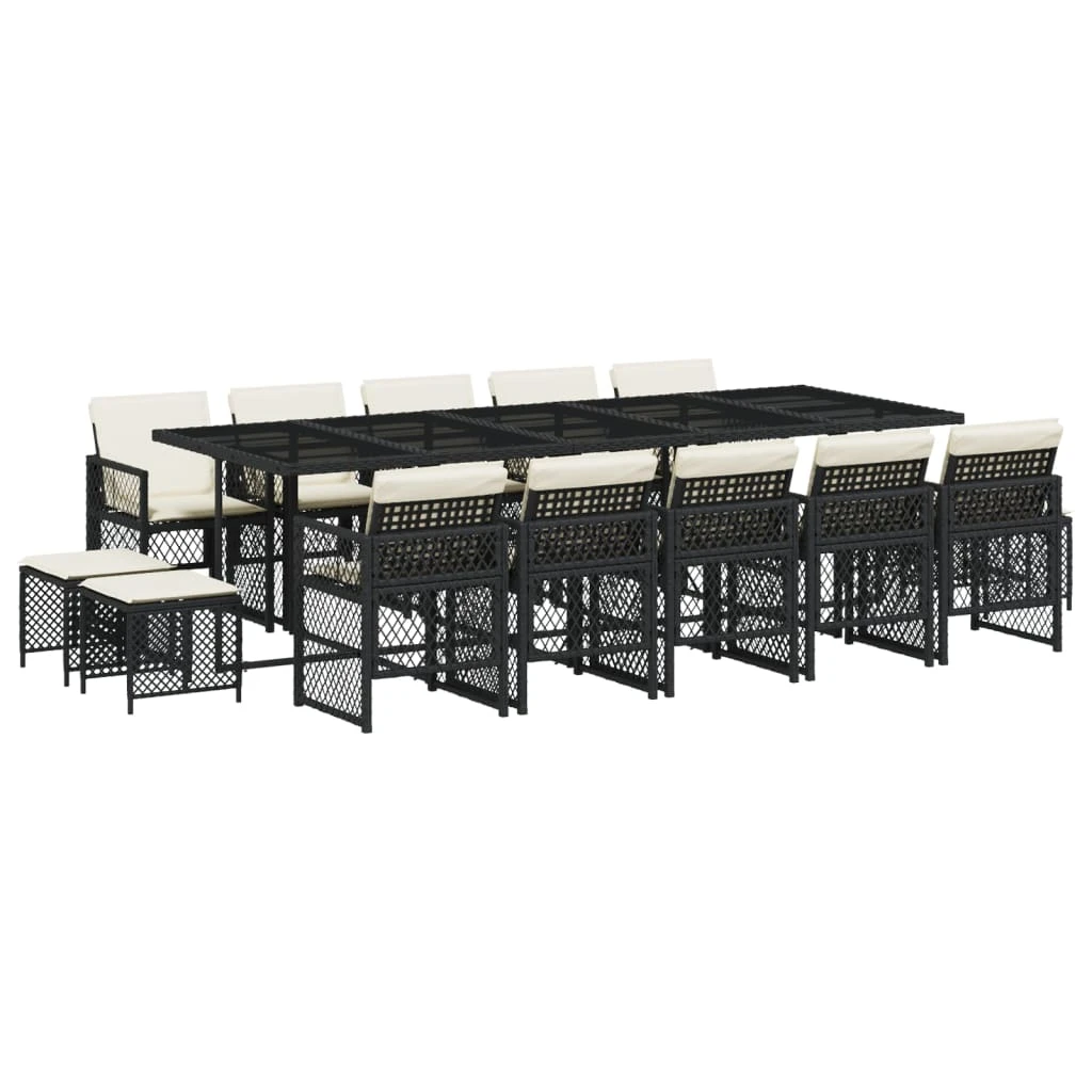 vidaXL Sodo komplektas su pagalvėlėmis, 15 dalių, juodas, poliratanas